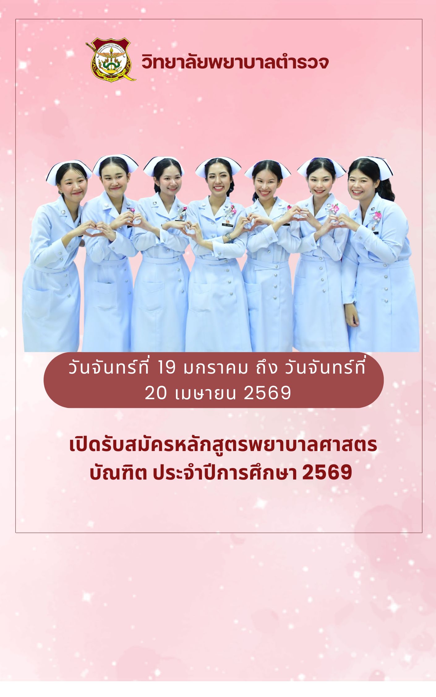 รับสมัครเเละคัดเลือกบุคคลภายนอกเข้าศึกษาในหลักสูตรพยาบาลศาสตรบัณฑิต (โครงการบุตร ข้าราชการตำรวจ)