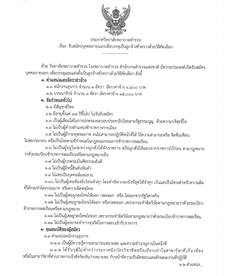 ประกาศวิทยาลัยพยาบาลตำรวจ เรื่อง รับสมัครบุคคลภายนอกเพื่อบรรจุเป็นลูกจ้างชั่วคราว